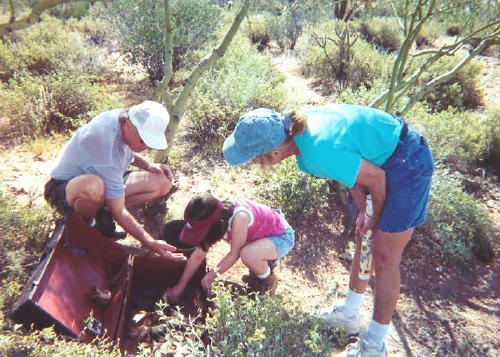 "What's THAT? It must be 100 years old. What's in it? Be careful, don't forget about the creepy critters that might be living in there. Open it carefully. LOOK AT ALL THAT GOLD! And there's a map, and and old indian doll and other old stuff. YIPPIE! Do you suppose there's still "gold in dem thar hills?"
