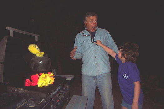 "It's GRANDPA JOHN!" yelled Danielle "Grandpa STOP!" Why are you boiling Tweety? It must be the evil snake. He cast a spell on Grandpa. |