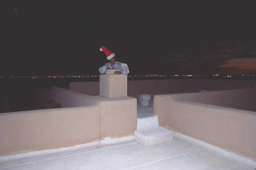 It was almost Christmas Eve and Jake and Jesse were all ready for the big night. They had the wagon and they had the horse. Now they only had to wait for Santa. But Jake began to wonder how Santa was going to get down those chimneys. He decided to take a look for himself. "Jesse, do you think Santa will fit down this thing?"
