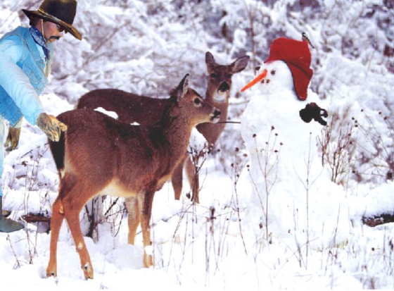 Finding reindeer was harder than Jesse thought. In the morning, before the sun came up, Jake and Jesse drove north until they came to snow. They spent hours trudging through the snow covered woods without seeing even their tracks. Then Jake had a good idea. He decided to build a snowman and use a carrot for his nose. That would surely bring the reindeer around. It worked. Right away, the first "reindeer" showed up.