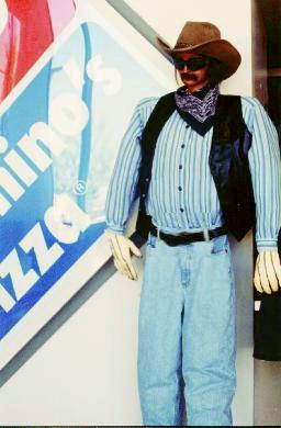 Continuing their search for a newspaper, Jake and Jesse spotted a sign that said, "HELP WANTED: Delivery Person" ....so inside they went. | |
