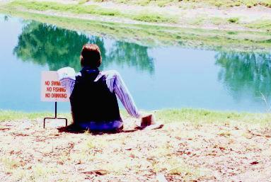 Jesse's first shot sent the ball straight into the lake. John had to find more, before they could continue playing. That gave Jesse time to rest. | |