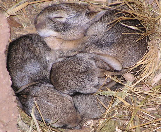 CRITTER STOP There's a bunny nest in the horse barn! See...look straight down in that hole. Aren't they cute? How many are there? |