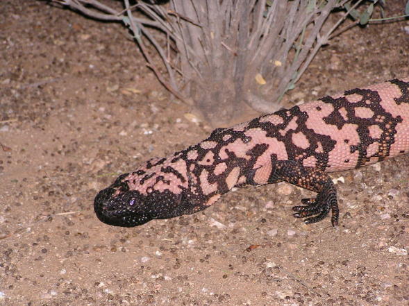 CRITTER STOP Yikes! Now THAT'S a big LIZARD!!! Wait.....that's not a lizard. That's a Gila Monster! He better change 'clothes' if he decides to play hide and seek! |