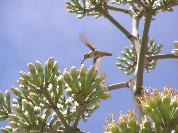 Hummingbirds love the agave blossoms