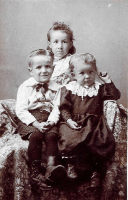 Ethel Tiffany is the oldest, b. in 1885. She is sitting in the back. William Helsey Tiffany is on the left, the second child born to Arthur and Alice (Butts) Tiffany, on Aug 1887. Florence Gertrude Tiffany, on the right, was born Nov 1889.