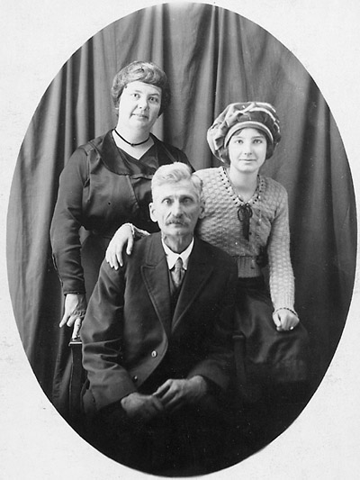 Alma Cora Robison was born in Dec of 1886 in Hillsdale Co, Michigan, the daughter of William Robison and Esther A. Whitney. She is pictured (left), with her daughter, Margaret Helmick, from her 1st marriage with Mortimer Helmick. Seated is her 2nd husband, Milon F. Camp. Photo probably taken about 1922-23. NOTE: Daughter Margaret Helmick attended nursing school in Detroit, Michigan and after her marriage to Joseph Szydel in 1932, she spent the rest of her life in Fairchild, Eau Claire Co, Wisconsin, where she died in September 2004.