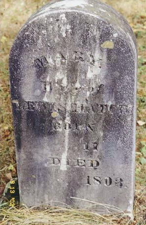 Mary Davis Hatach, wife of Lewis Hatch, was buried in Hillside Cemetery, Honey Hill Road, South Granville, Washington County, New York. The cemetery is located beside the site of the First Congregational Church of South Granville. The first house of worship was erected in 1789 or 1790, one mile west of South Granville, in Hillsdale, at the intersection of Route 149 and Lee Road. It was used for worship until 1807, when it became too small for the congregation. The church was converted to a dwelling and stood until it's destruction by fire on March 27, 1970. The new church was erected in 1807, at the present site in South Granville.