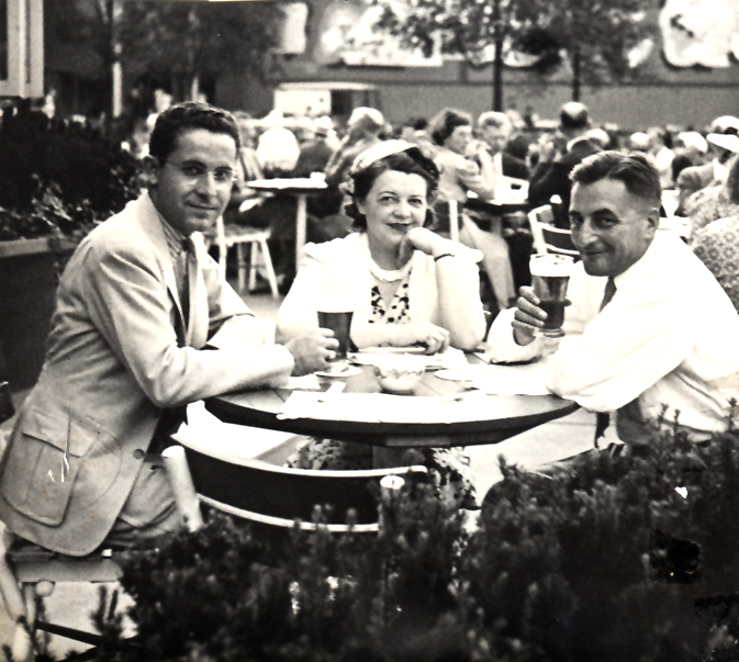Son-in-law Joseph Treble Sinclair left, enjoying a drink with Margaret "Zoe" Lorene (Fellabaum) and Albert Lewis Hoener. Albert Lewis Hoener right, was born Sep 23, 1890 in Buffalo, Erie Co, New York, the son of Albert Eduard Christoph Hoener and Katharina Winstel. He married Margaret "Zoe" Lorene Fellabaum on June 25, 1913. Margaret "Zoe" was born Jul 17, 1892 in Ohio and died Feb 10, 1976 in Detroit. They had two daughters, before Albert died on Sep 23, 1957, in Grosse Pointe, Wayne Co, Michigan. Joseph Sinclair was born in May of 1915. He married Miriam "Peach" Christian Hoener in 1936. Miriam was born Aug 06, 1915, in Detroit, Wayne Co, Michigan, the daughter of Albert Lewis and Margaret (Fellabaum) Hoener. She died Feb 27, 2001 in Grand Junction, Grand Co, Colorado. They had four children before Josesph died, sometime after 1950.