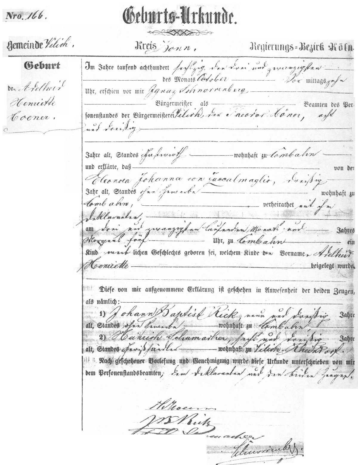 | BIRTH RECORD OF ADELHEID HENRIETTE HOENER |