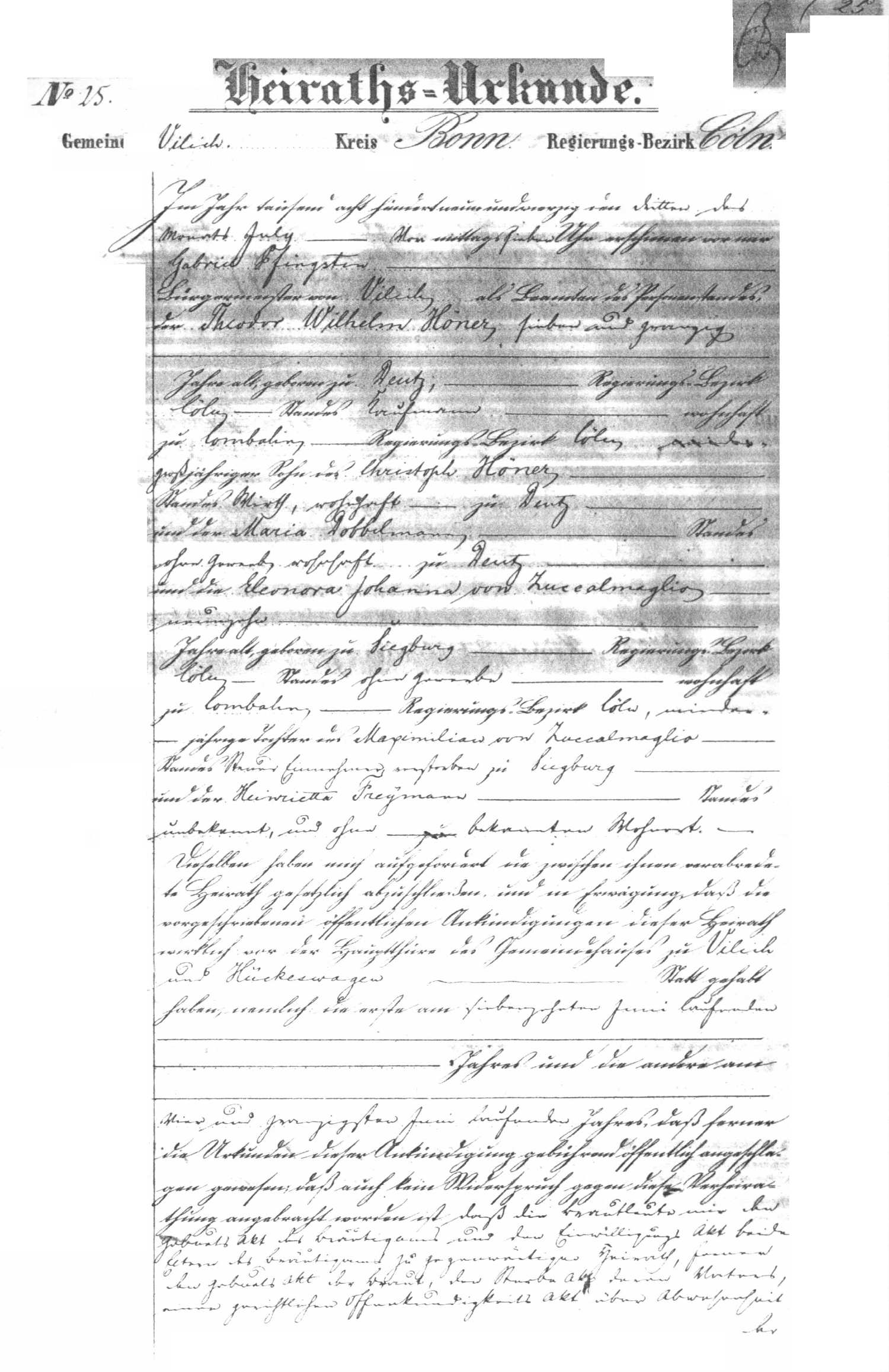 | MARRIAGE (PAGE 1) OF THEODOR WILHELM HOENER AND ELEONORA VON ZUCCALMAGLIO |