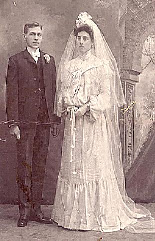 Herman J BENDER and Mary WISNET on their wedding day Apr 20, 1904. Their daughter, Mildred K BENDER, married Elmer R LINTNER, son of Carolina WINSTEL and Nicholas LINTNER.