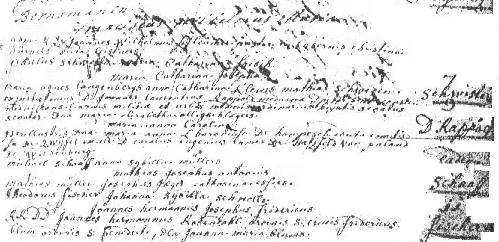 The baptism of Maria Anna Carolina Rappold, dated on March 7, 1753, daughter of Johann Laurentius/Laurenz Rappold and Maria Elisabeth Olligschläger. Record from Sankt Lambertus Kirchen, Düsseldorf, Rheinland, Preussen - Germany