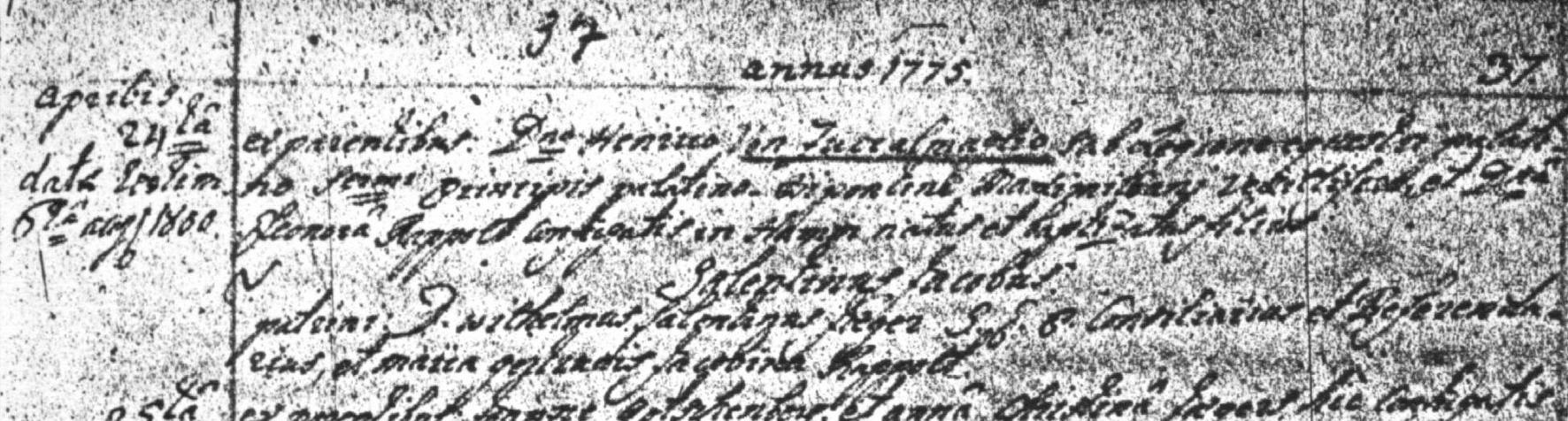The baptism of Salentinus Jakobus von Zuccalmaglio,dated on April 24, 1775, in Düsseldorf, Bilk, Rheinland, Germany
