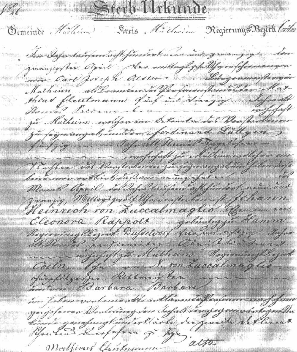 | DEATH RECORD OF MARIAN HEINRICH VON ZUCCALMAGLIO |