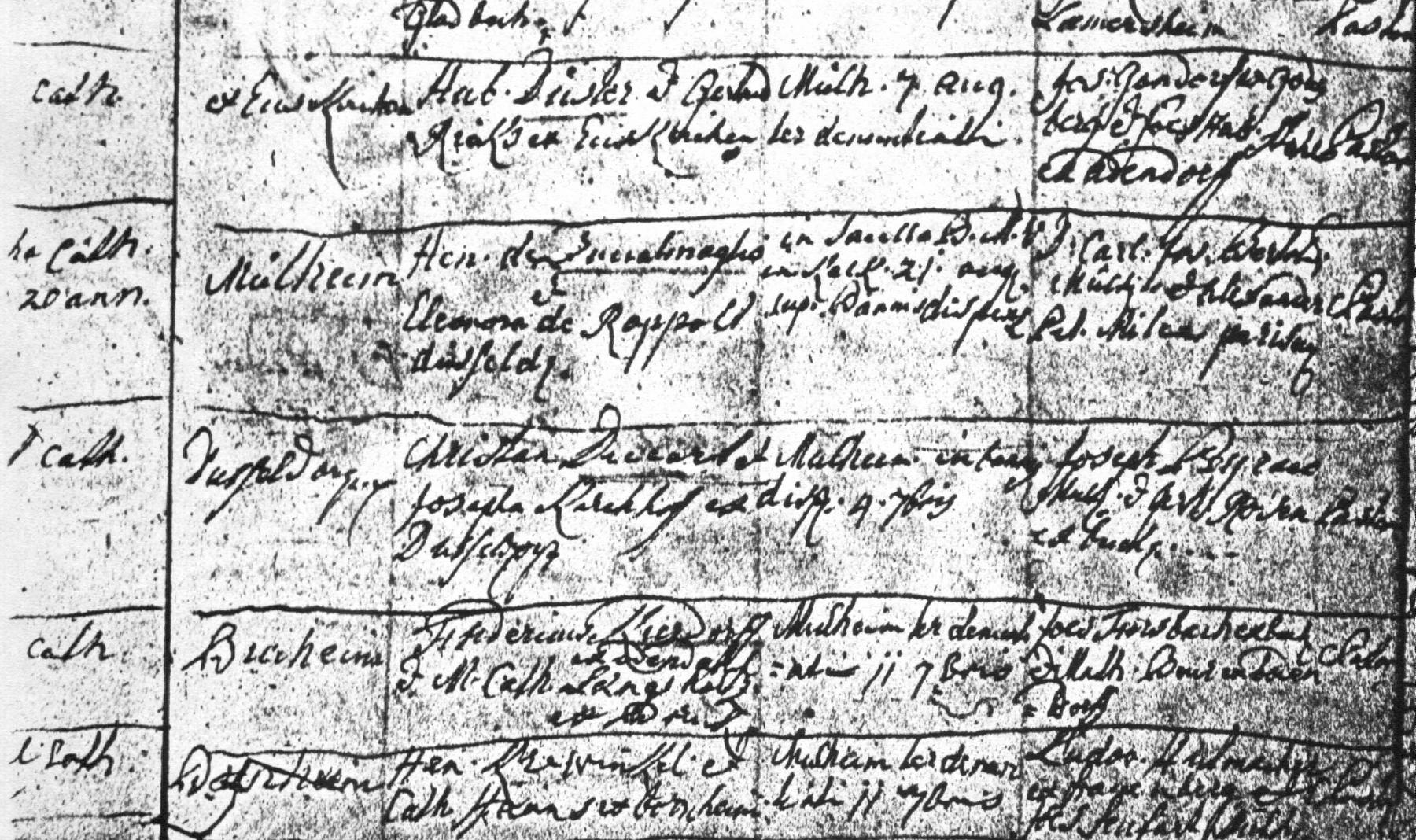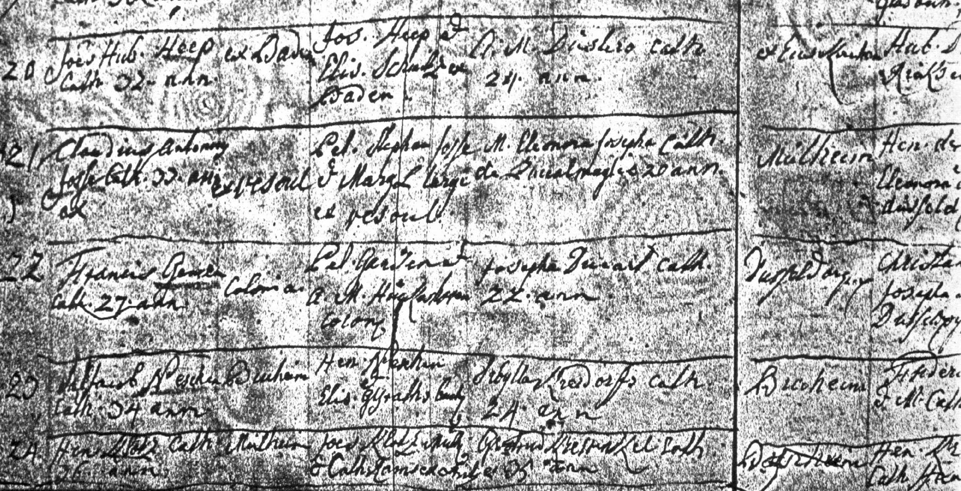 Baptism record from St. Clemens in Mülheim am Rhein, Germany, courtesy of Wolfgang Aretz of Cologne, Germany.
