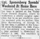 Tech Sgt. George Sponenberg of the Signal Corps Special Service, who is now serving in Italy, is today observing his third anniversary in the Army. He had been in North Africa and Sicily before Sgt. Sponenberg has been overseas for twenty-two months. He joined the Army three years ago on March 3, 1942.