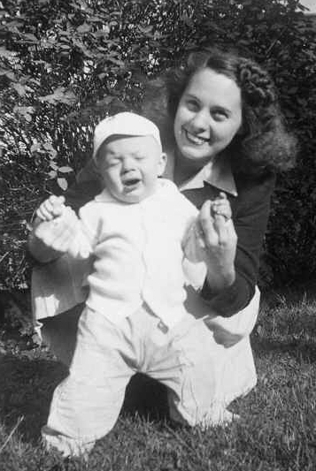 Miriam (Farver) Dadovich with son John Dadovich, in the summer of 1945, in Flint, MI