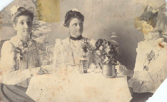 Left side is Winnie Armina (Hukill) Hatch, wife of Frederick Lavern Hatch. The other two women are unidentified.
