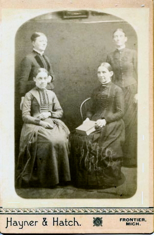 Cardboard Unidentified Shiffler Related Group[ This photo is from a lady who found it in the attic of her mother's house. Her mother lived near Frontier, Woodbridge twp, Hillsdale Co, Michigan. Ina Fitzgerald married Morte Wilde. Morte's second marriage was to Orpha Shiffler. This photo belonged to Orpha Shiffler's family.