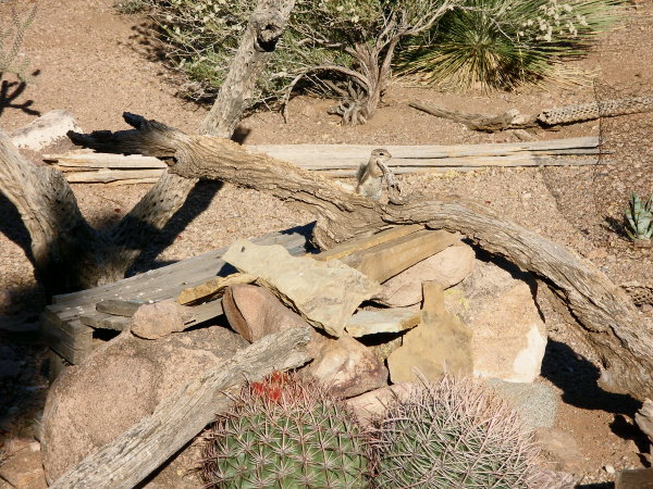 ROCKS This hare desert's whatcha call purdy. There's all kinds of rocks and caves fer them critters to hide under. |