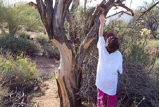 "It's not here. There's nothing under the tree. Wait...look up there!"