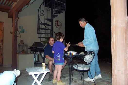 "Sure Danielle" said Grandpa John "It's a beautiful night. I'll start the barbeque grill and you can tell me how to cook your steak." |
