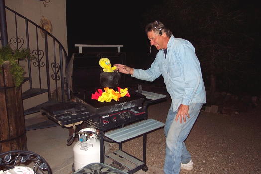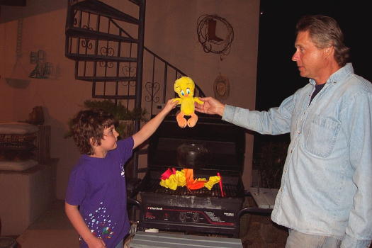 | "Quick! Let's save Tweety" said Danielle "Help me pull him out of the cooking pot." |