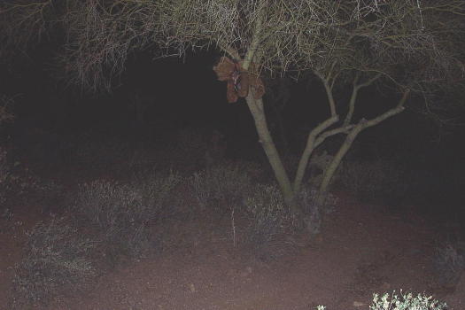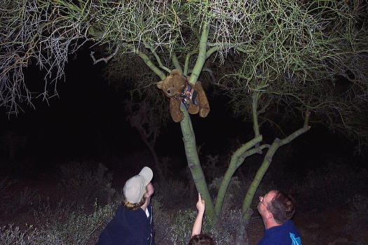 | "Quick someone....shine the light! I heard something in the palo verde tree!" yelled Kris |