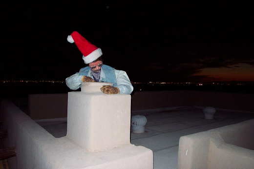 It was almost Christmas Eve and Jake and Jesse were all ready for the big night. They had the wagon and they had the horse. Now they only had to wait for Santa. But Jake began to wonder how Santa was going to get down those chimneys. He decided to take a look for himself. "Jesse, do you think Santa will fit down this thing?"