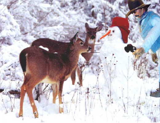 Finding reindeer was harder than Jesse thought. In the morning, before the sun came up, Jake and Jesse drove north until they came to snow. They spent hours trudging through the snow covered woods without seeing even their tracks. Then Jake had a good idea. He decided to build a snowman and use a carrot for his nose. That would surely bring the reindeer around. It worked. Right away, the first "reindeer" showed up.