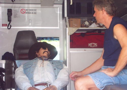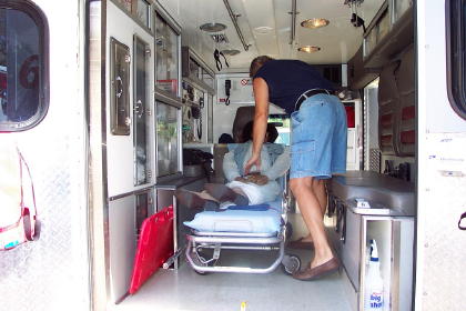 John and Joanne heard the sirens and went to investigate. When John saw Jake in the ambulance, he jumped in to ride with him to the hospital. Joanne followed in the car. |