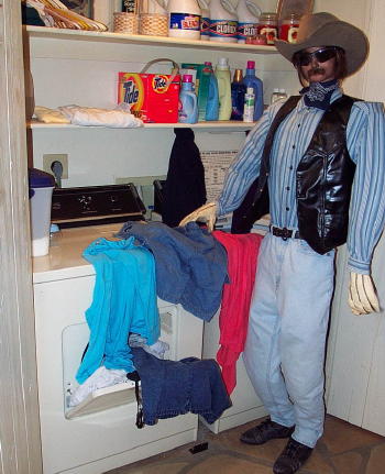 Jesse ran through the house looking for dirty clothes. He washed them all, then threw them in the dryer. "Hey Jake, I think the dryer ate one of your socks!"