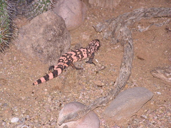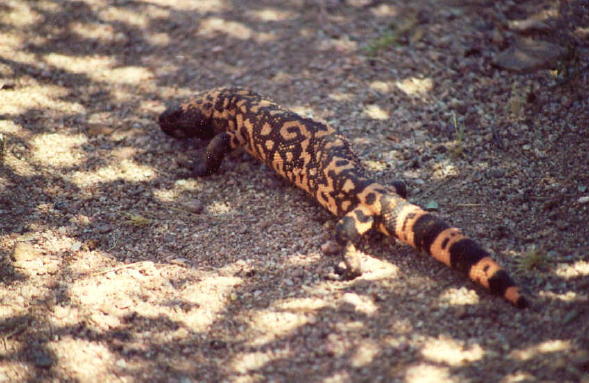 CRITTER STOP Yikes! Now THAT'S a big LIZARD!!! Wait.....that's not a lizard. That's a Gila Monster! He better change 'clothes' if he decides to play hide and seek! |