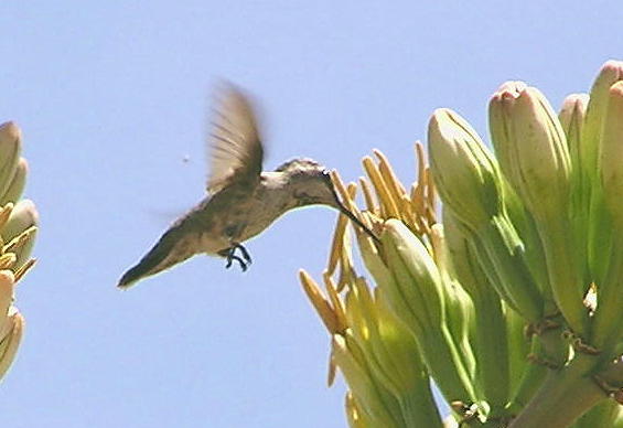 Hummingbirds love the agave blossoms