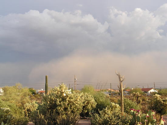 This is the same view....with a dust storm heading straight for us Quick....get inside, shut the doors and windows!!! Nope...not me.....I'm heading for the roof!