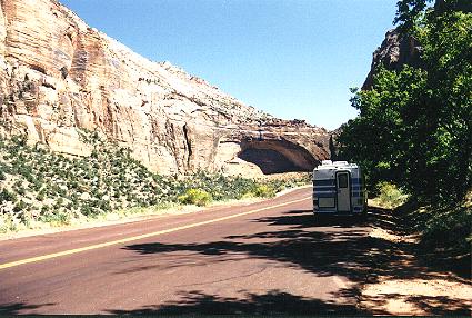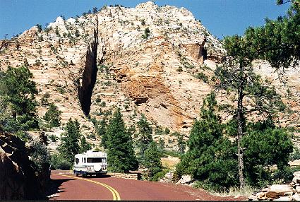 You have to see this place to believe it. You can't just look at little pictures and know what it is like. So, start packing. Oh, by the way....sorry for the dark sky at the top of the pictures, but they didn't make the windshield big enough for Zion. And, yes that's John in the last picture. |