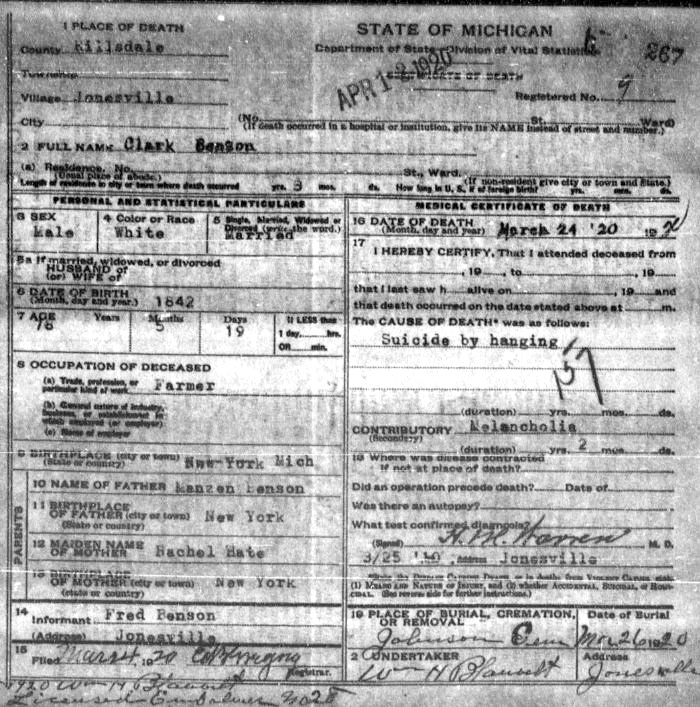 | SAMUEL CLARK BENSON Death Certificate