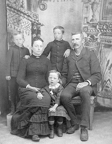 Jeannine Byard writes...."This is Charles Franklin Fitzgerald with his second wife, Harriet called "Hattie" (Houghton), sister of Mary, Charles 1st wife). The children are Lee, standing in the middle, Dorr on the left and Ray sitting between his parents. .....about the story of Irene, Charles 3rd wife. Our family has heard the same story, about Charles being unfaithful to Hattie, which probably caused her to commit suicide. Because of the date of her death and the birth of Irene's 1st child, I am not sure she committed suicide because she found out Irene was expecting. There are about 3 years, I believe, between the two events. Perhaps just because of the affair. Who knows?!"
