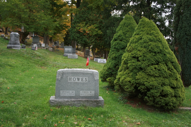 Fred W. and Jennie M. Howes are buried in the Canaseraga cemetery, Burns, Allegany Co, New York.