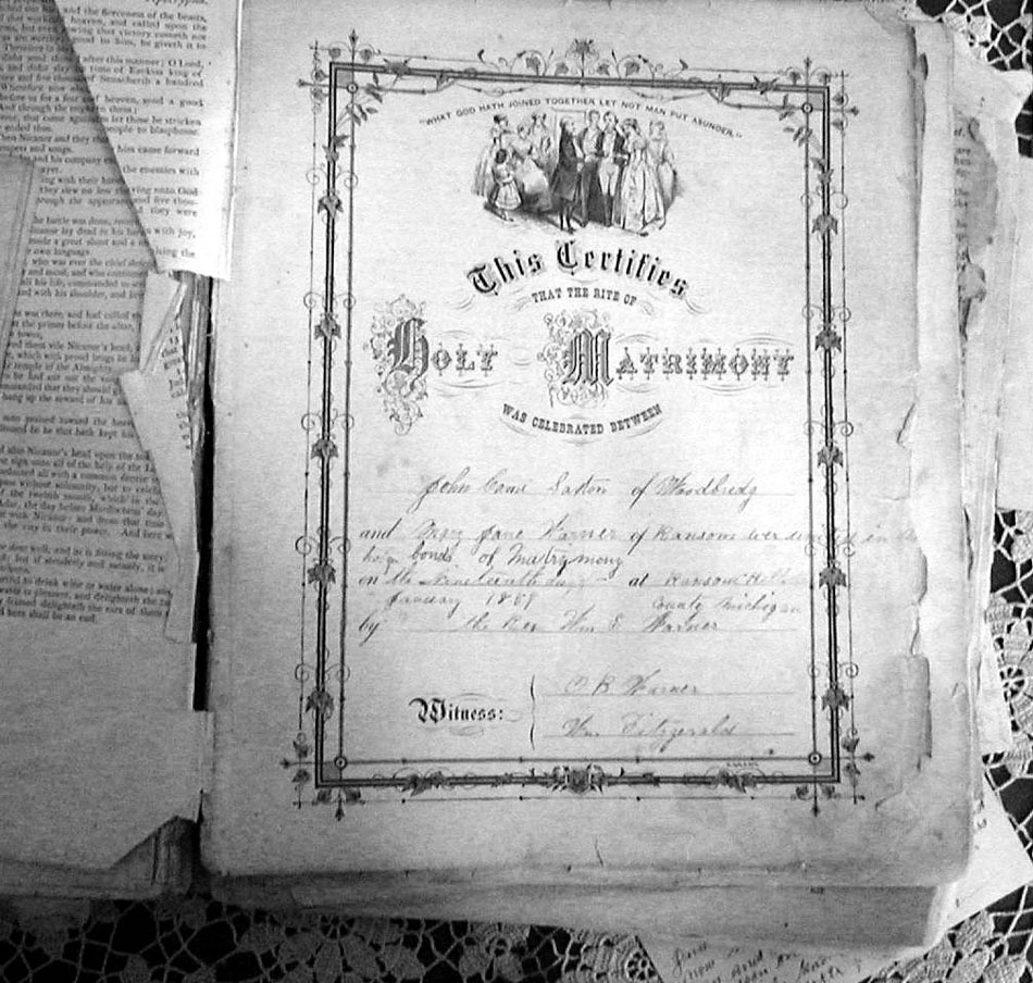John Carmi Saxton was born Jan 07, 1835 in Raisin township, Lenawee Co, Michigan and died Feb 09, 1913. This is his bible.