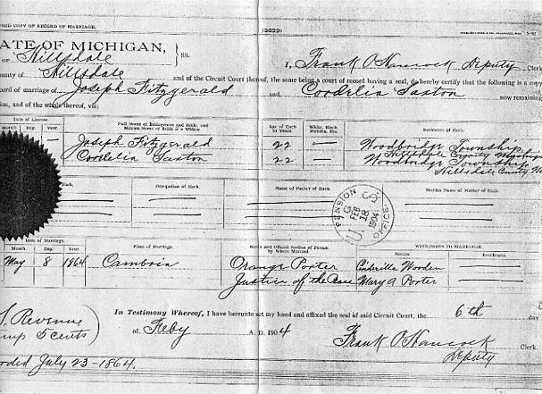 Joseph C. W. Fitzgerald Marriage Record