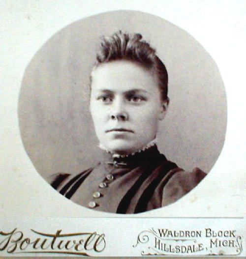 Nellie Watkins was born September 07, 1873 and died in 1932 in Hillsdale Co, Michigan. She married William E. Warner about 1892. He was born in April 1869 and died in 1942. Photo courtesy of Delores Kimling.