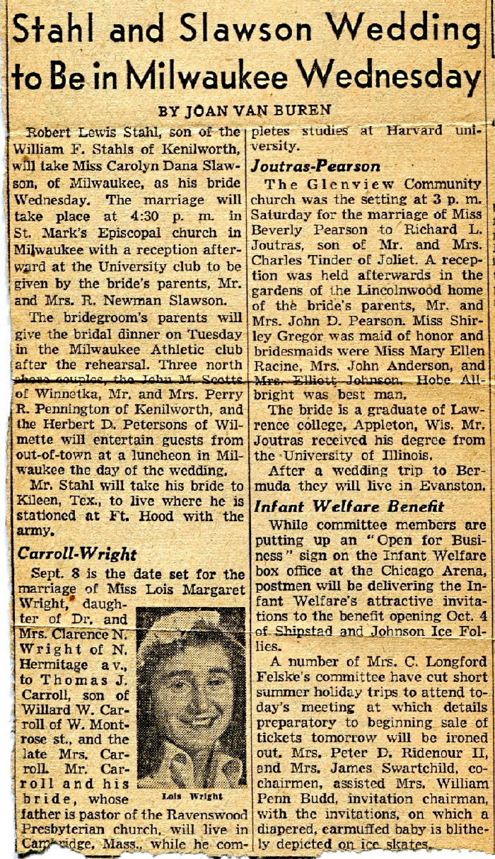 Thomas Jay Carroll married Lois Margaret Wright. They had three children.