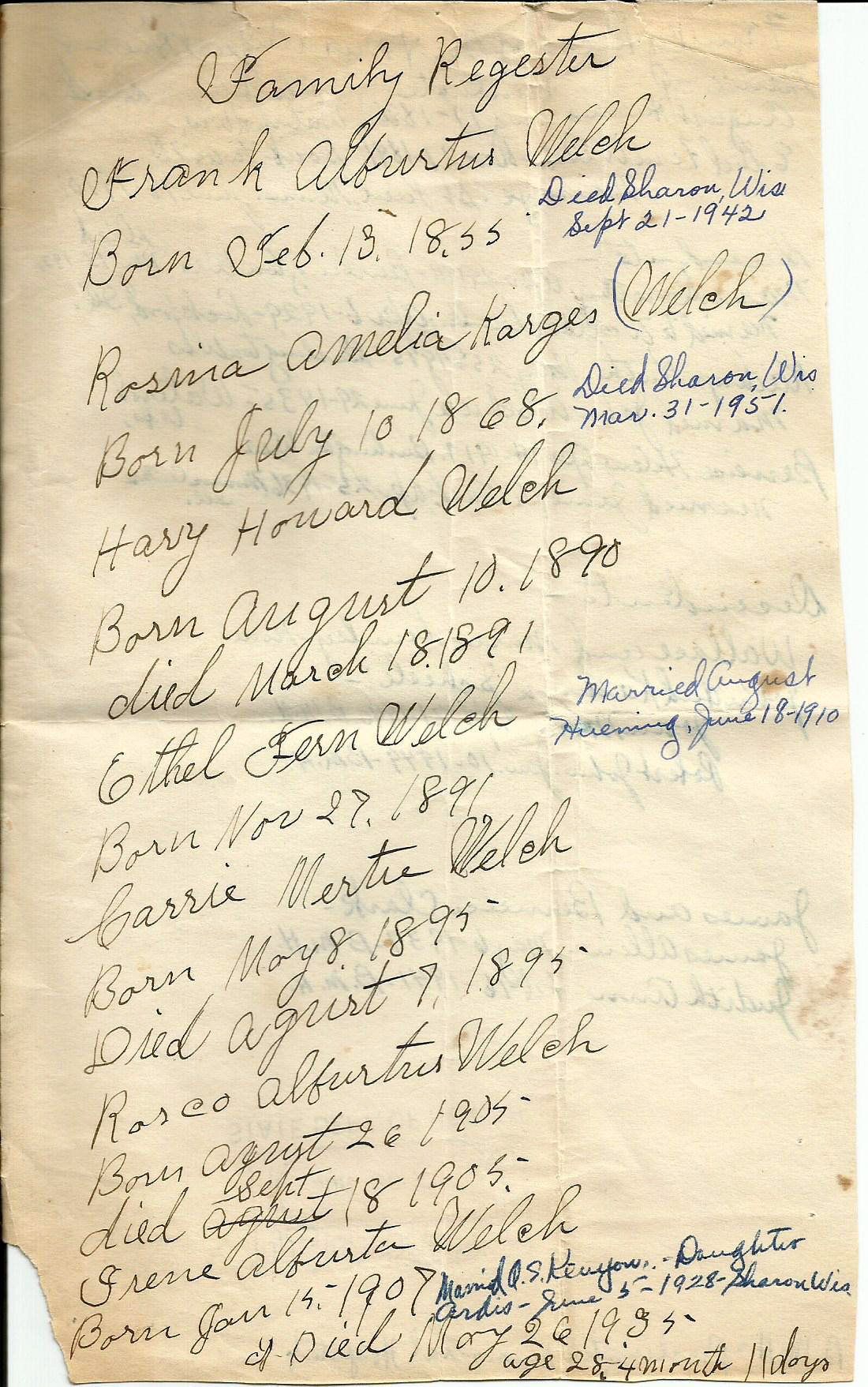 This original handwritten family register is in the possession of Jay Clark.