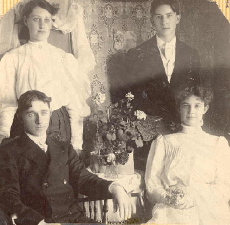 Earl Leon Hatch married Verena Isabelle McManus on April 11, 1906. Earl's brother, Dean Northum Hatch is standing top right.