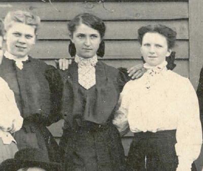 Olca (center) is with her sister, Leah Hatch (right) at the wedding of their brother, Earl Leon Hatch, April 11, 1906.