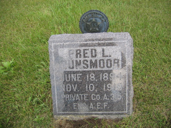 Frederick Dunsmoor was born Jun 18, 1894, the son of Frederick Melvin and Harriet Lucretia (Sargent) Dunsmoor. He died Nov 10, 1918 in France and is buried at County Corners Cemetery, Cass, Clayton Co, Iowa