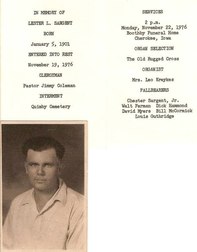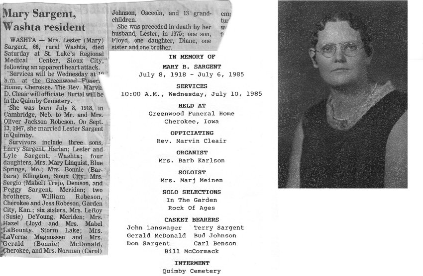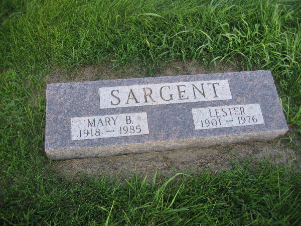 Lester Lewis Sargent 1901-1976. Mary Bernice (Robeson) Sargent 1918-1985. Grandview Cemetery, Quimby, Cherokee Co, Iowa.