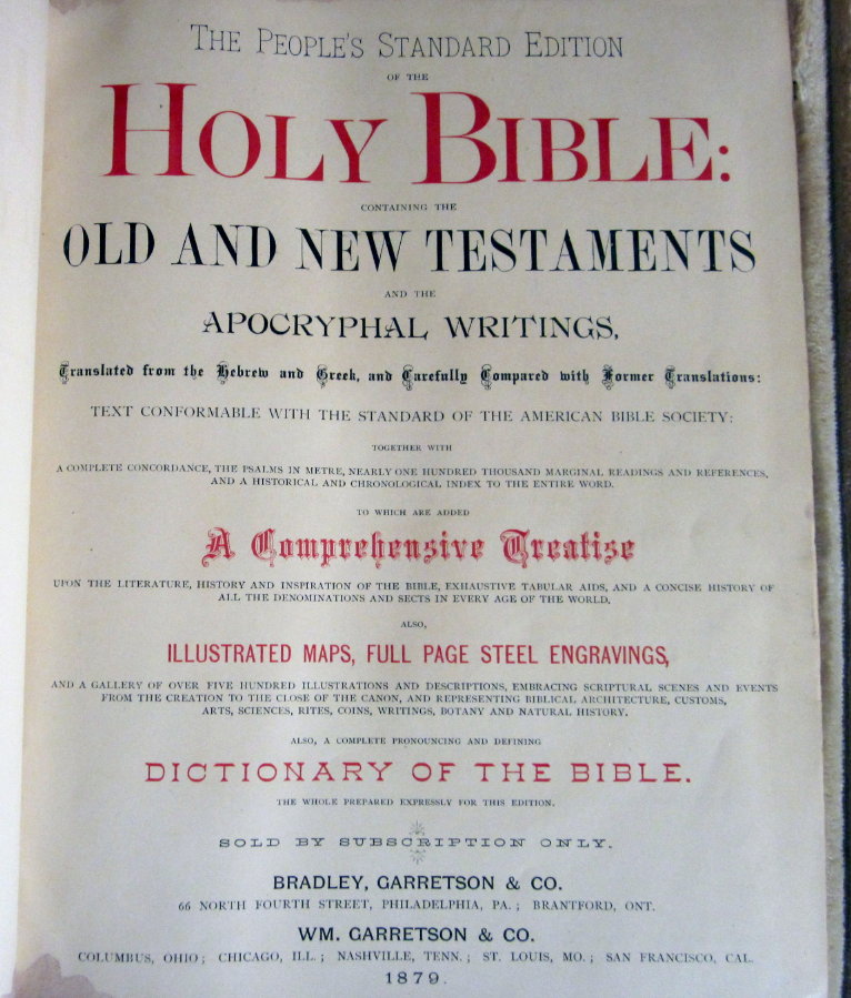 Bible in the posession of John H. Harter III |